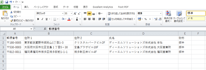 EXCELに必要な宛名データを入力する