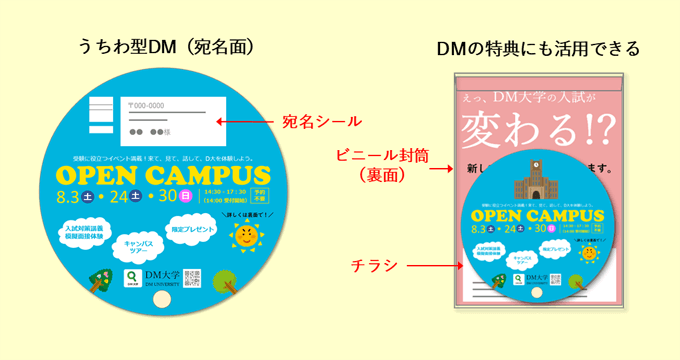 型抜き加工を活用したうちわ型DMの例