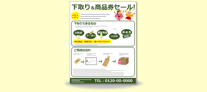 初回&定期商品同梱物アイデア例_商品券&商品下取りセールチラシ