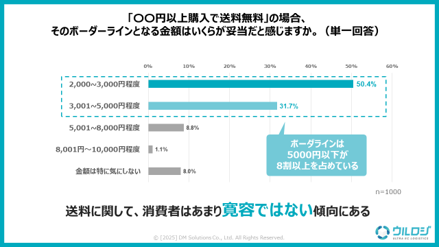 EC市場の黎明期から続く「送料無料」の文化が、消費者の心理に深く根付いていることを示す結果です。物流コストが高騰する中、多くの事業者が送料の有料化や値上げを検討していますが、それが消費者の強い抵抗感に繋がるリスクを十分に認識する必要があります。